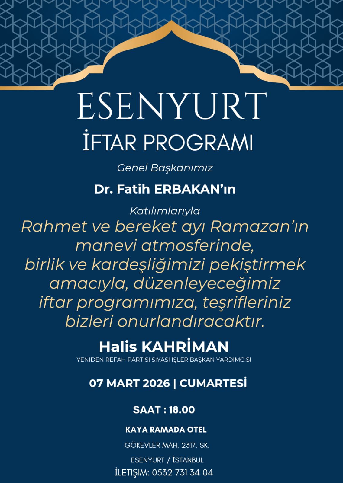 HALİS KAHRİMAN İFTAR                              DAVETİ